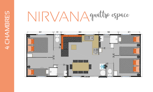 Mobil-home can accommodate up to 8 peoples : 4 bedrooms, 2 bathrooms, 2 separate toilets … the supreme comfort to spend friendly and unforgettable moments with friends or family!