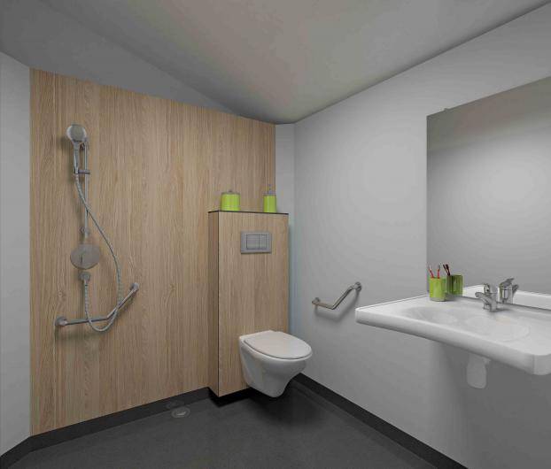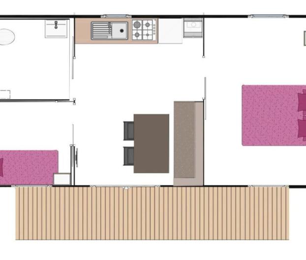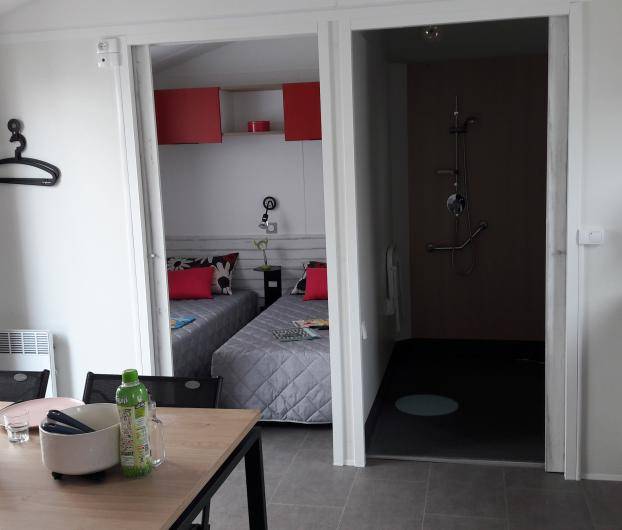 Les aménagements de ce modèle sont idéals pour circuler aisément : une rampe d’accès, une cuisine à une hauteur inférieure ainsi qu’une salle d’eau adaptée.