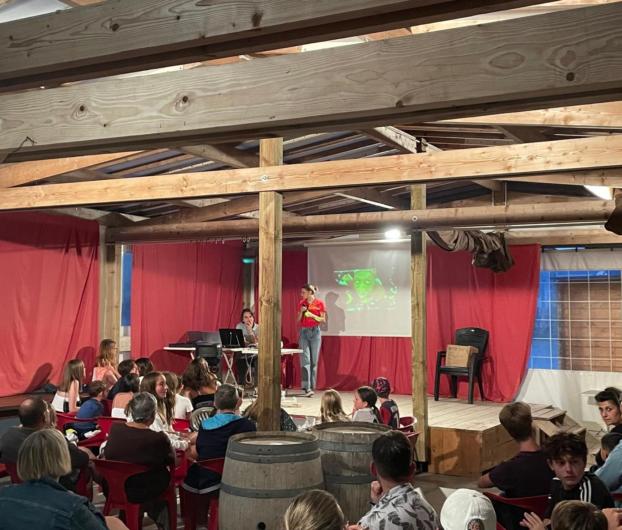En soirée, tout le monde se retrouve lors des animations du camping et profite des festivités dans une ambiance détendue et familiale !